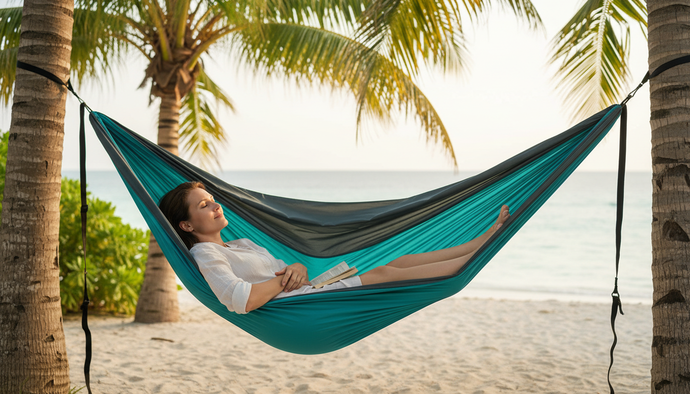 Camping Hammock Portable Nylon Hammocks with Tree Straps Single Lightweigtht Hammock Swing for Outdoors, Backpacking, Camping, Travel, Beach, Garden, Breathable & Quick Drying Parachute