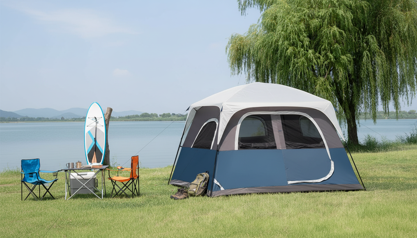 Outdoor Camping Tent Blue Grey 6 Person Tents Portable Large Instant Cabin Tent Easy Setup Waterproof Windproof with 5 Large Mesh Windows and Carry Bag for Outdoor Camping & Hiking