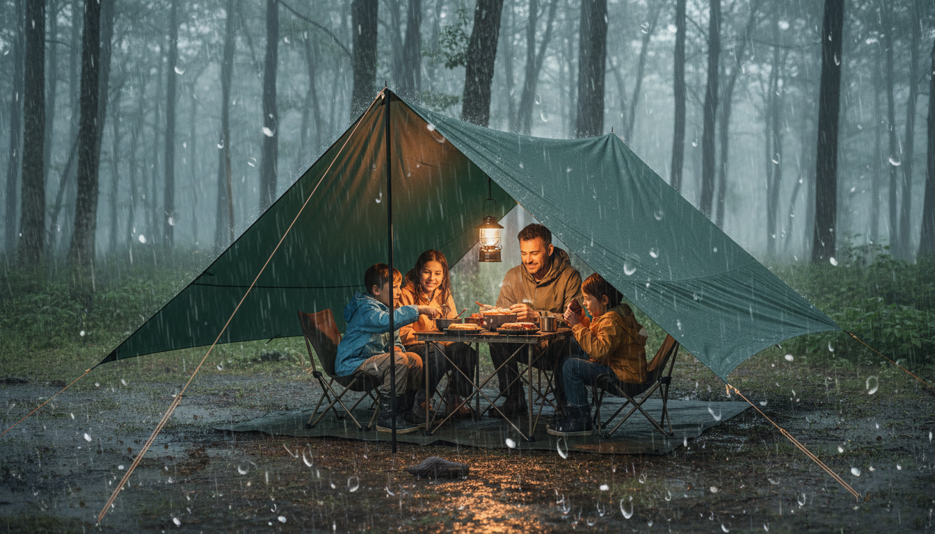 Camping Rain Fly with Heavy Duty Poles Kit, 15x10FT Tarp Oxfordfabric Tent Waterproof UV Protection, Fits 8-12 People for Outdoor Hammock Shelter Camping Tarp Pad, Hiking, Camper Gear
