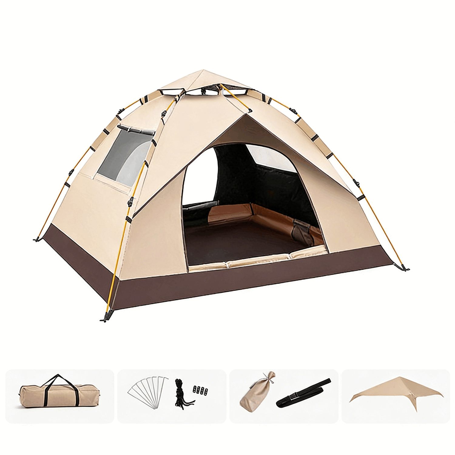 - OPTIMIZED VENTILATION-- 2-door and 2-windows to ensure air circulation and prevent hot air from accumulating in the tent. The double zipper with seams makes the entrance convenient and the closing smooth. The zipper door can be propped up for sun protection.