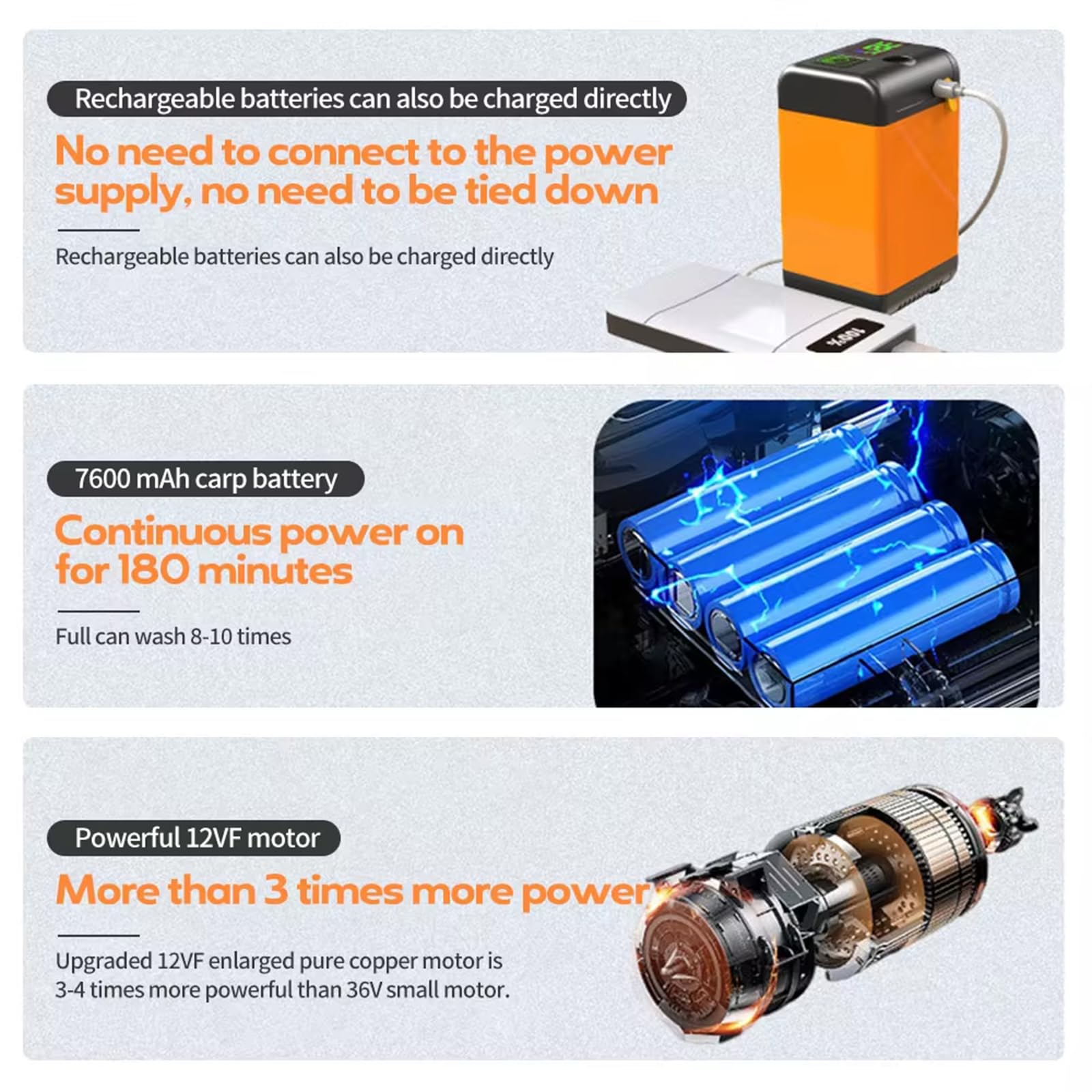 - Built-in 4800mAh lithium battery can last up to 100-110 minutes when fully charged, it can be powered by your phone charger, power bank, or car USB output