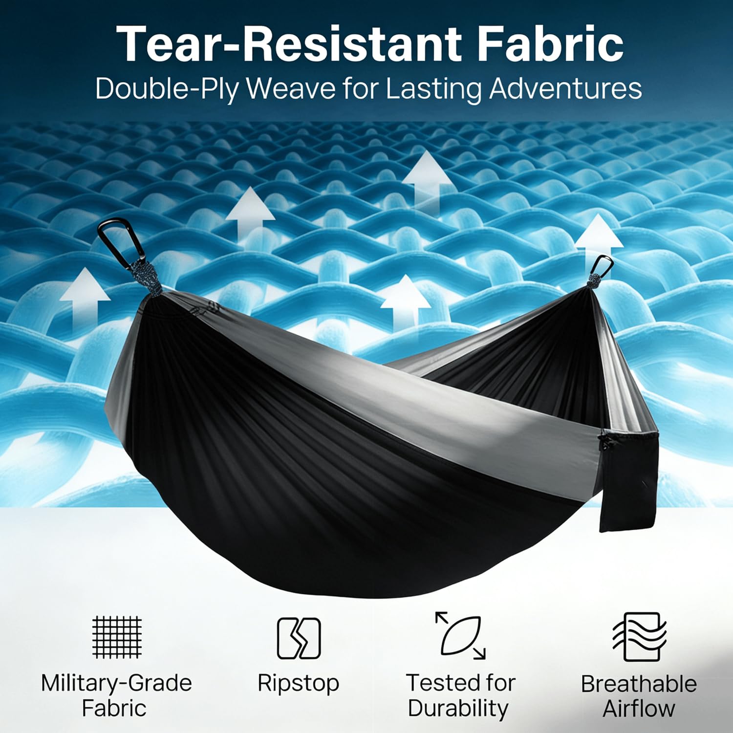 - Strong & Spacious – Single hammock measures 106''L x 55''W and supports up to 400 lbs. Ideal for one adult to unwind comfortably during camping, hiking, or traveling.