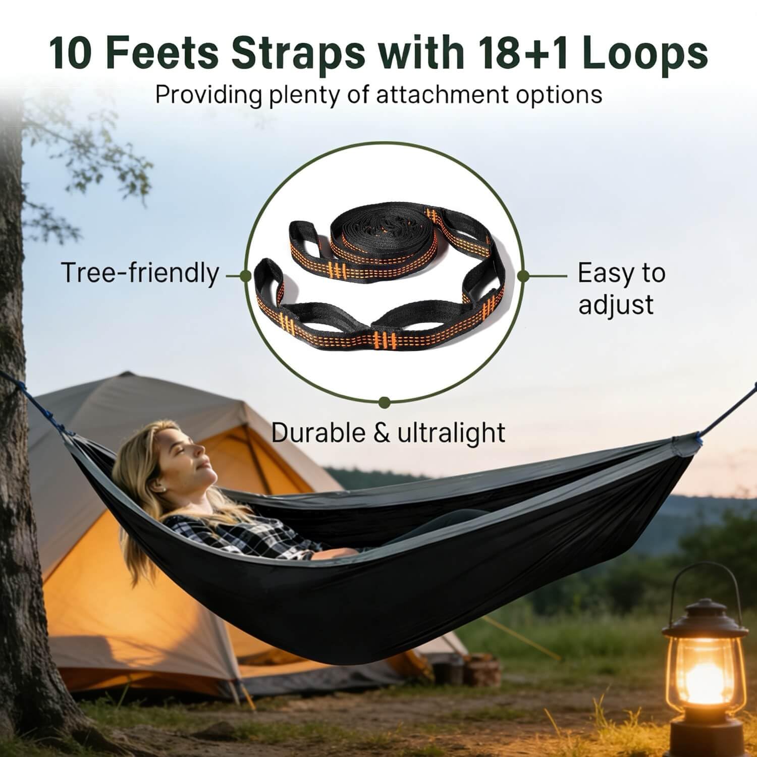 - Easy & Adjustable Setup – Comes with tree-friendly straps and durable carabiners, featuring 5+1 adjustable loops for easy height customization. No knots required, just clip and enjoy!