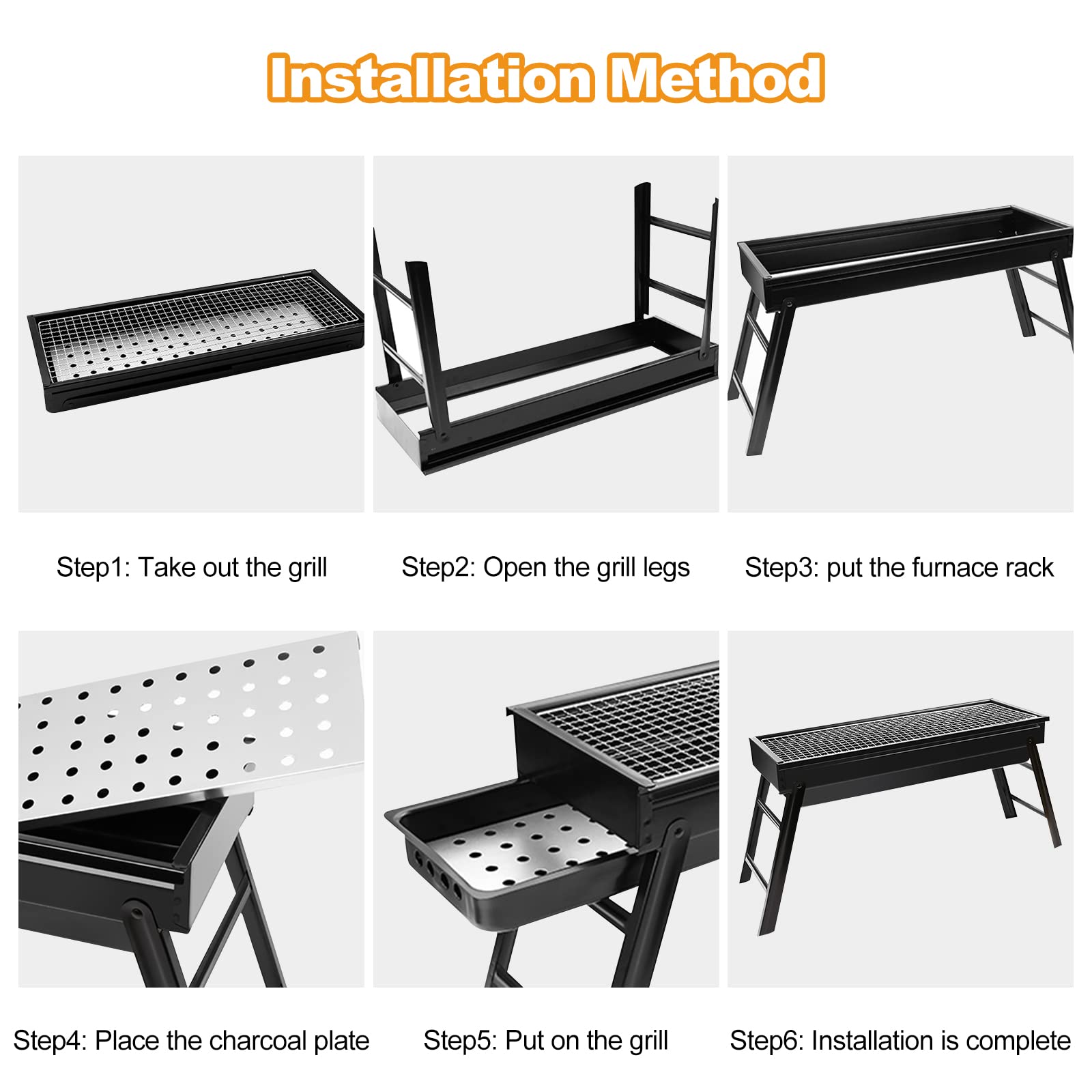 - 【Foldable & Detachable】The grill has light, foldable legs, which can be opened when in use and laid flat on the ground to support the grill. When not in use, the legs are folded up for easy portability and storage. The split-type detachable stove rack, carbon tank, carbon separator, and grilling net are more convenient for detachable cleaning.
