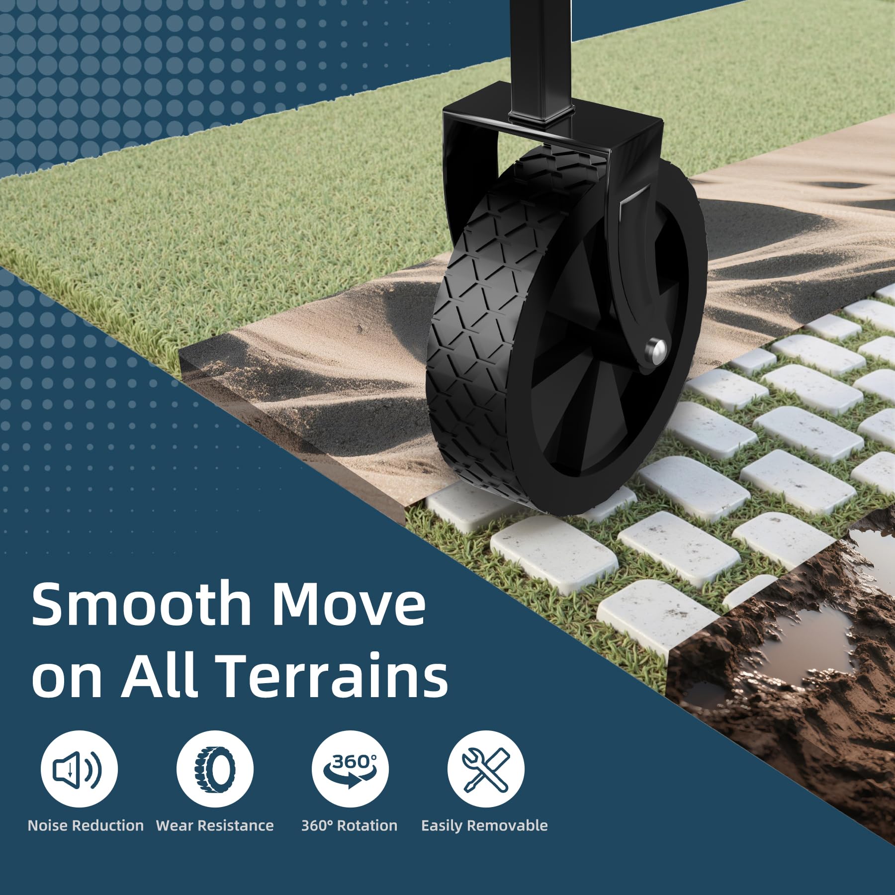 - ALL - TERRAIN WHEELS - Equipped with two front 360° rotating wheels, this foldable wagon can glide smoothly over various terrains like pavement, grass, and sand. The wheels are also detachable, facilitating storage and maintenance.