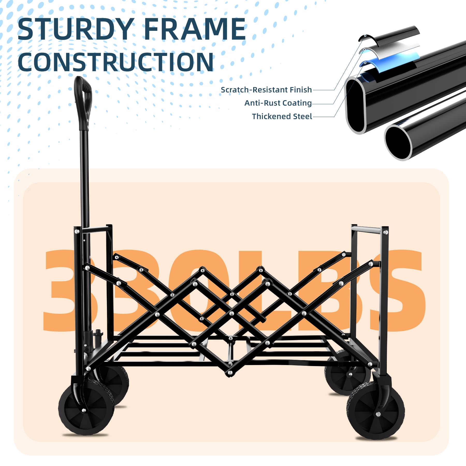 - 330LBS LOAD CAPACITY - Built with a sturdy alloy steel frame, this utility cart can effortlessly hold up to 330 lbs. The double - layer 600D oxford fabric is tear - resistant, waterproof, and wear - resistant, ensuring long - lasting performance and durability for carrying various items.