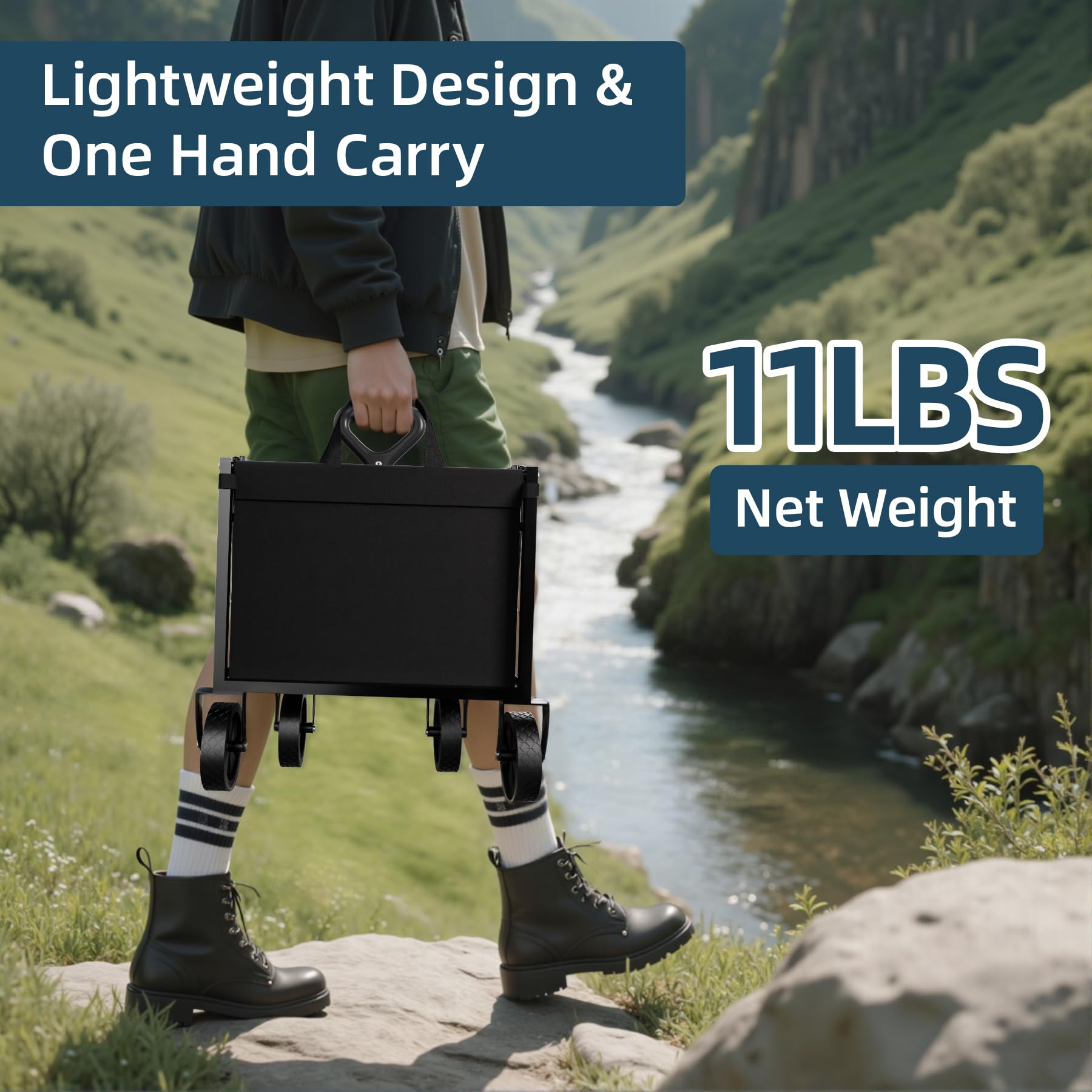 - COMPACT & PORTABLE DESIGN - Weighing only 12.5 lbs, this Folding Wagon cart is highly portable. It folds down to a compact size, making it easy to store in your car trunk or a small closet. Unfolding and folding can be done in seconds without tools, ideal for quick - paced activities.